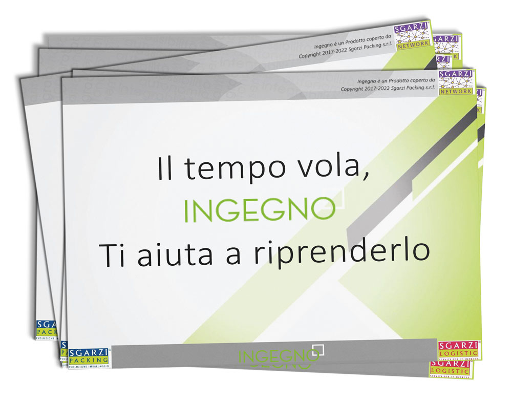 Ingegno è un’innovativa piattaforma informatica di nostra concezione che sviluppa soluzioni personalizzate nelle aree di confezionamento e imballaggioper macchinari, impianti e ricambi. Il software realizza un sistema di gestione del tempo rapportato alle attività, in grado di sviluppare indicatori di riferimento idonei a creare obiettivi progressivamente valutabili. Nelle sue poliedriche applicazioni, Ingegno è un acceleratore di razionalizzazione, motivazione e gestione delle attività umane, rendendo possibile e misurabile la flessibilità e il raggiungimento degli obiettivi.